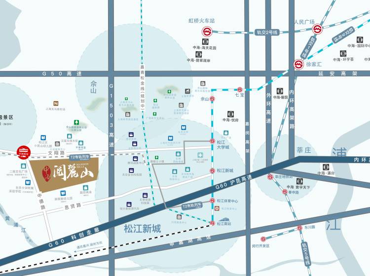 中海阅麓山项目地处松江新城西板块,依托于G60科创走廊,打造一个海派风格住区;项目周边配套有4万方的中惠棠里商业综合体、实验学校等;交通出行也较便捷T2有轨电车延伸段-中德路站(规划中)、G60沪昆高速。