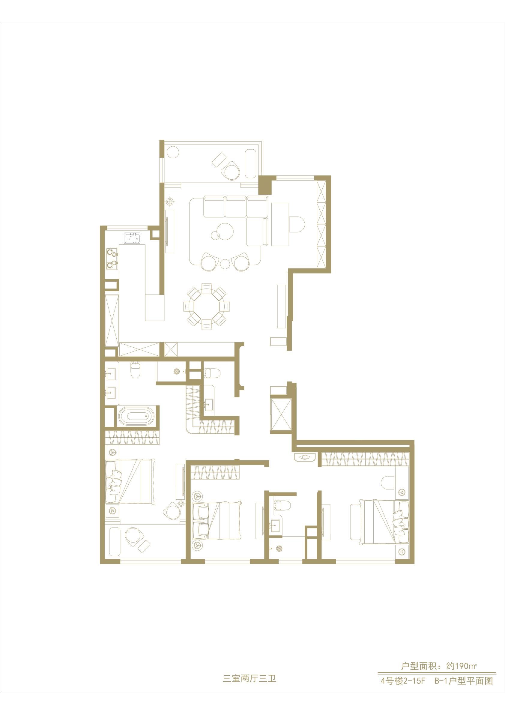 3室2厅3卫-2、3号楼2-15、17-30F E户型