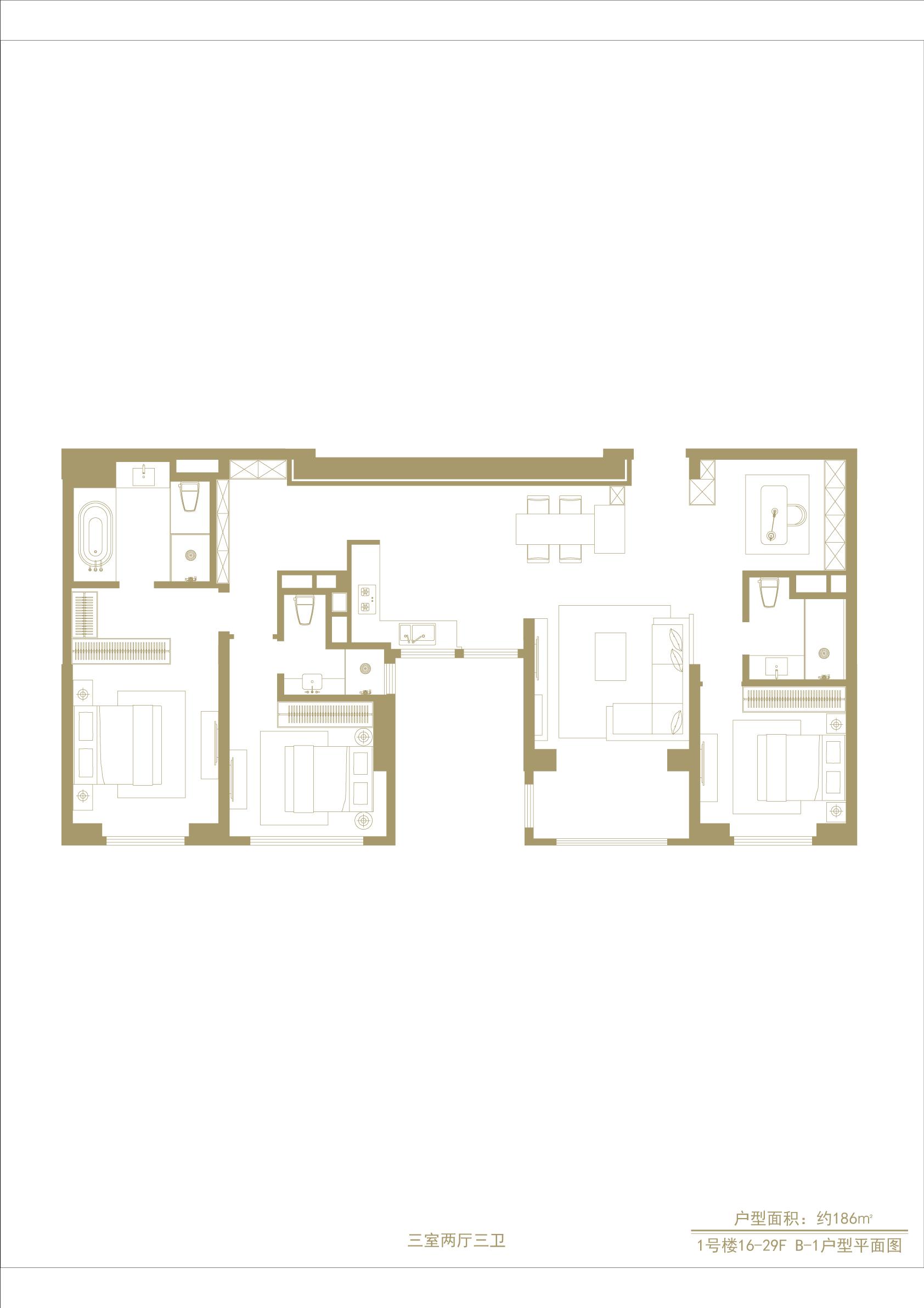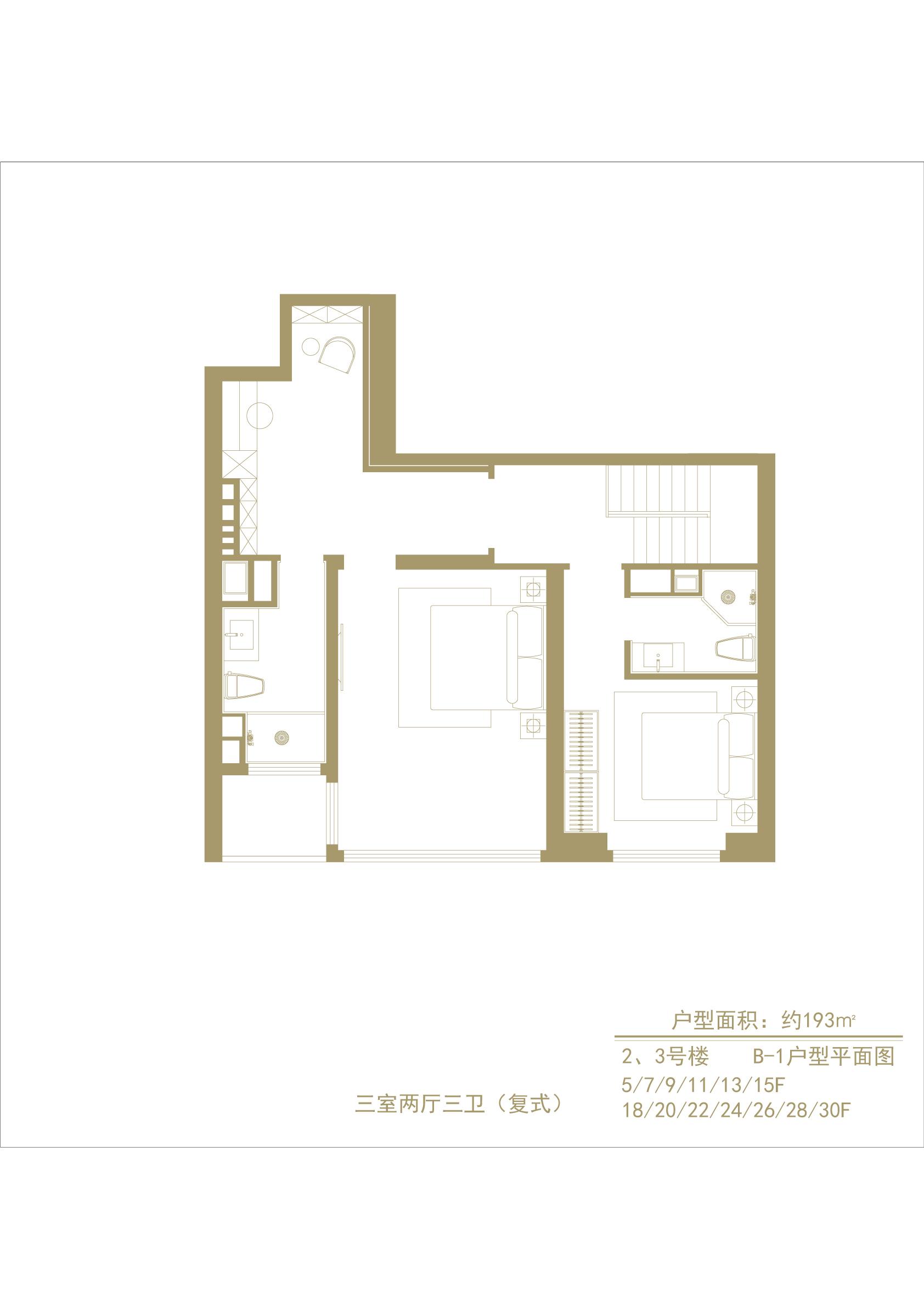 3室2厅3卫-2、3号楼 B-1户型(复式)
