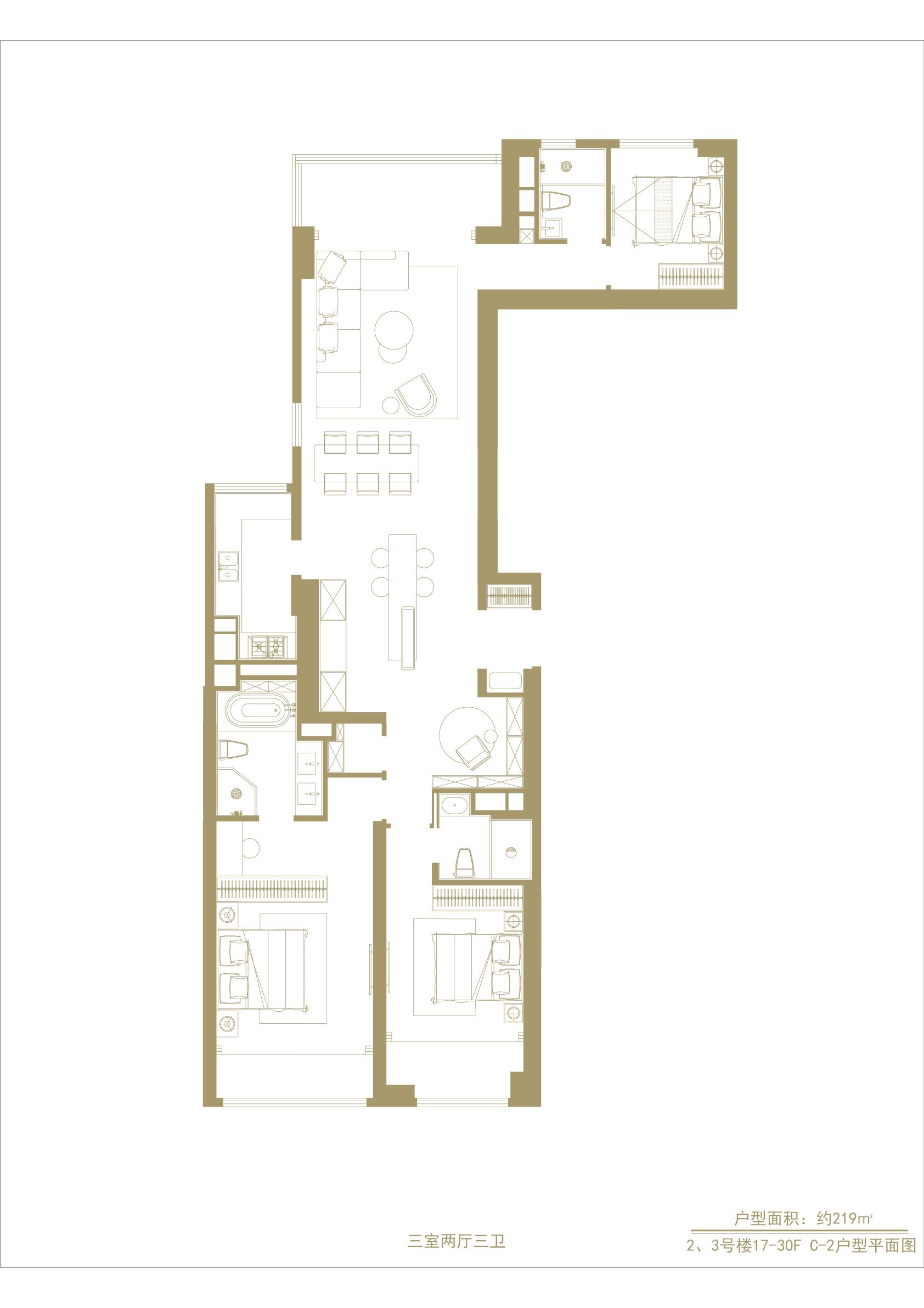 3室2厅3卫-2、3号楼17-30F C-2户型
