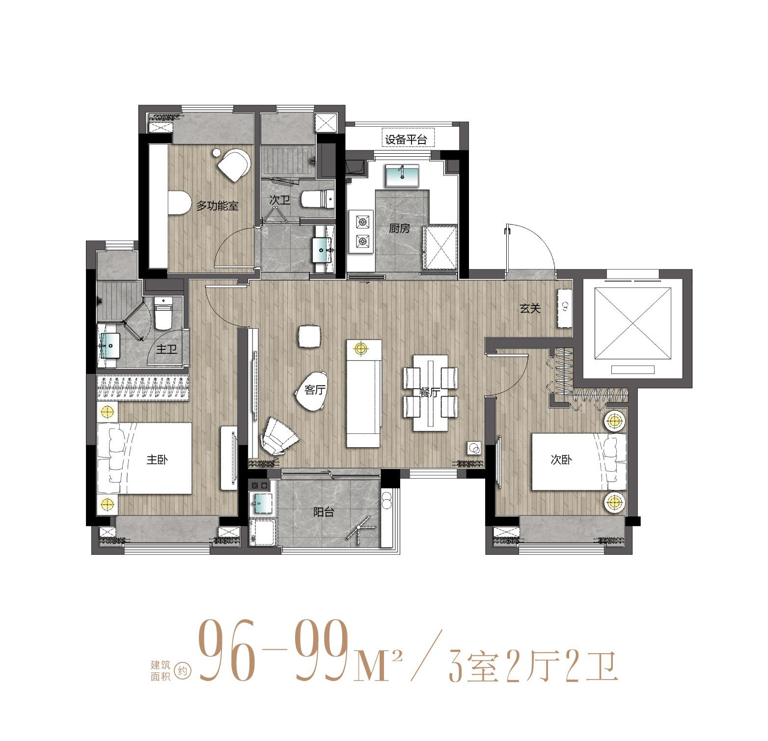 3室2厅2卫-96-99㎡户型