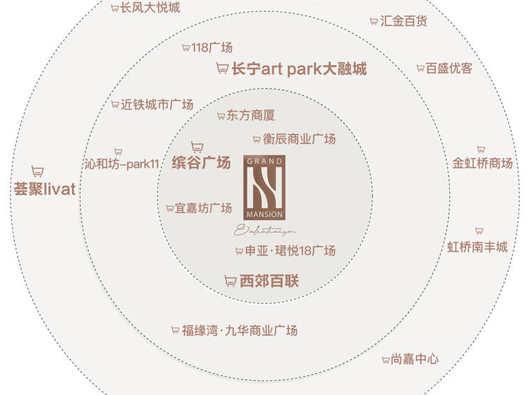 临近缤谷广场、百联西郊购物中心,东方商厦等老牌商业,3KM范围内涵盖金虹桥商场、上海荟聚、虹桥南丰城、尚嘉中心(LVMH集团投资)等超106万方商业综合体