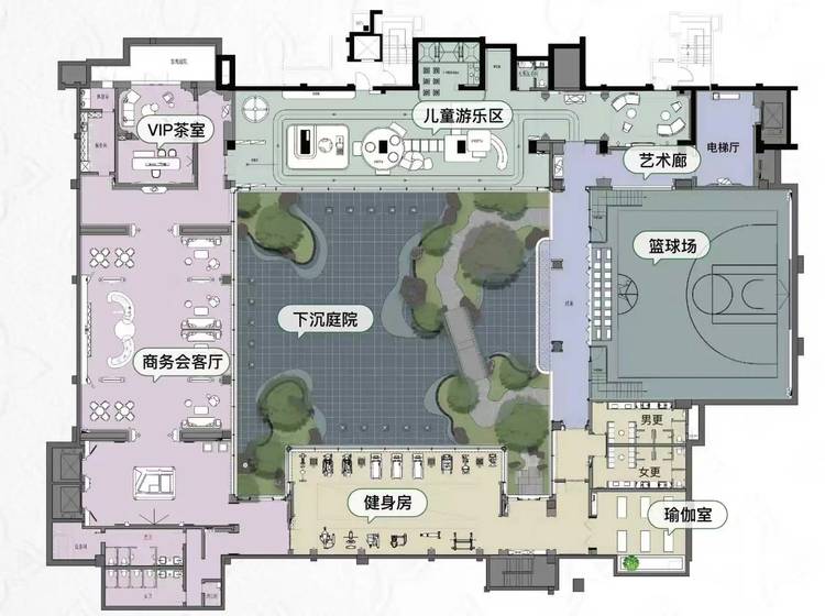 新中式园林、全抬板社区、儿童活动区、健身区、休闲会客区