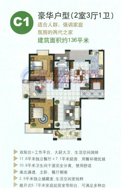 建面136m²