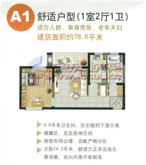 1室2厅1卫-地杰国际城A1