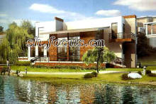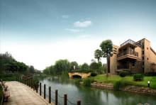 圣地维拉社区内部规划有13000平方米自然水域,原生700米T型河道,1500平方米草坪等自然景观。圣地维拉项目的建筑风格则以现代构成主义为主要风格,并部分借鉴乡村风格,外立面色彩温暖明晰,大量运用石材的粗糙感营造外立面。
