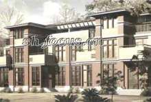 截止05年11月初,该盘主力房型联排面积为200-235平米、双拼为235平米,现在售中。
