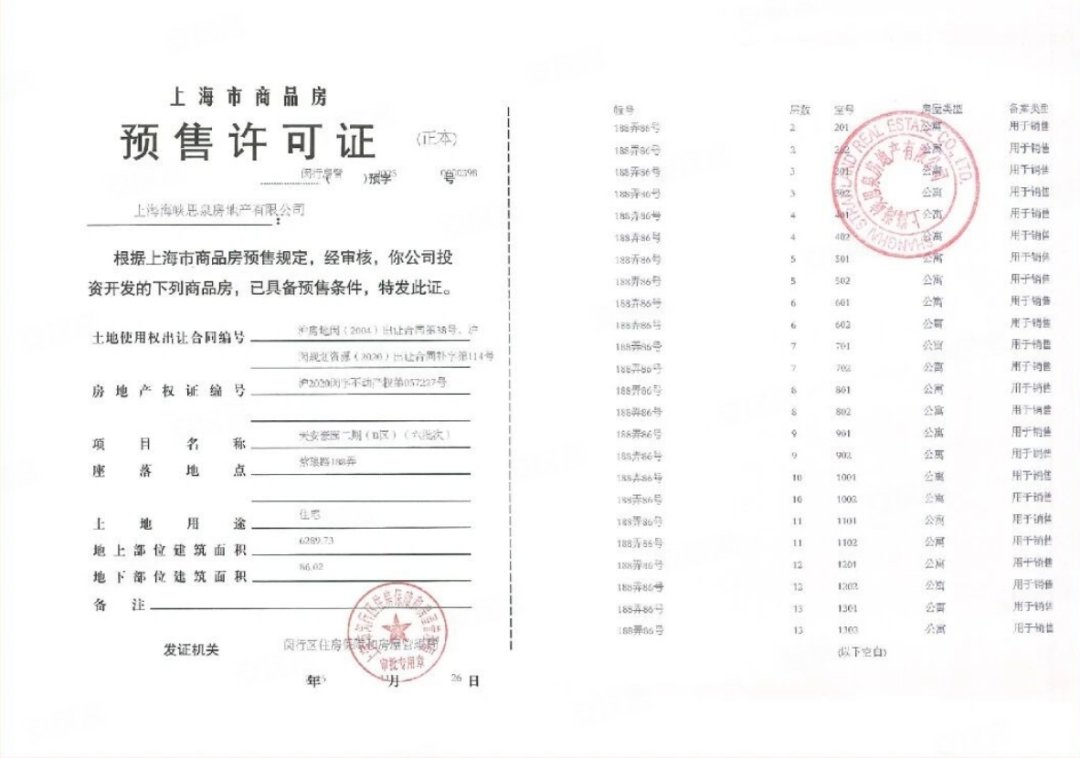 - 闵行房管(2024)预字0000223号 详情发证时间 2024-08-14绑定楼栋B-26-1#、B-22#、B-20#证件照片