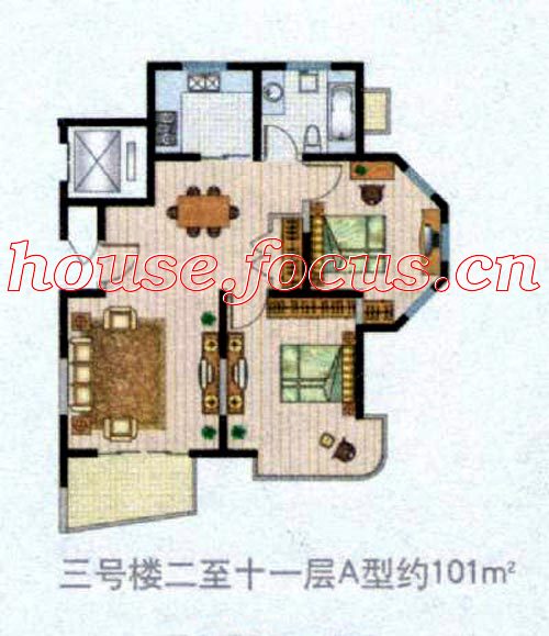 3栋建筑线条流畅,1栋为14层商务配套楼座,2栋为10-13层小高层住宅楼,总建筑面积27700平米。
