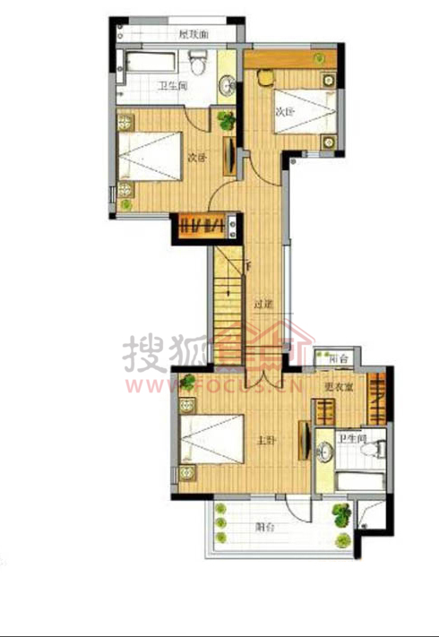 0室-景港名人苑别墅B户型2层3室4厅4卫1厨