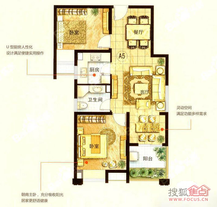 2室2厅1卫-保利叶语2室2厅1卫A5