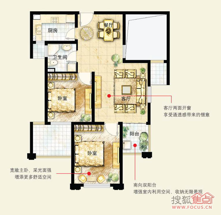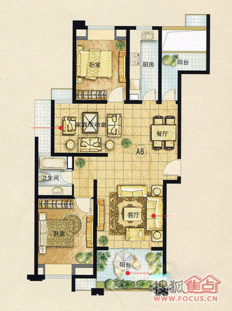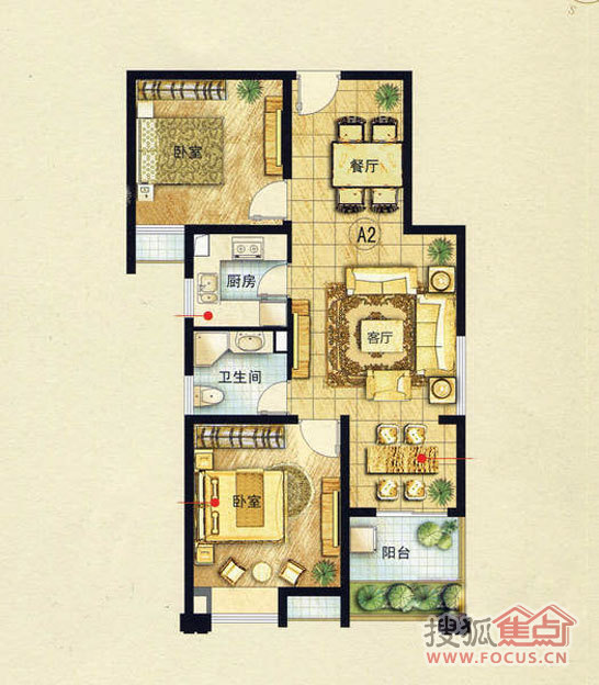 2室2厅1卫-保利叶语2室2厅1卫A6