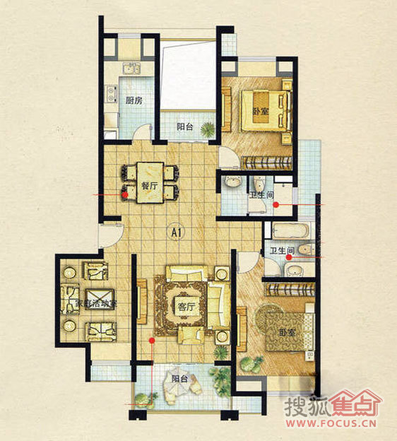 3室2厅2卫-保利叶语3室2厅2卫A1