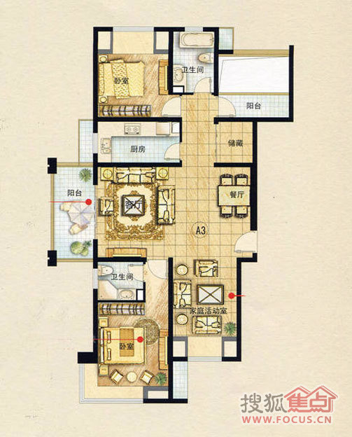 3室2厅2卫-保利叶语3室2厅2卫A3