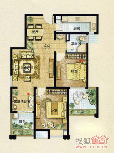 2室2厅1卫-保利叶语2室2厅1卫A14