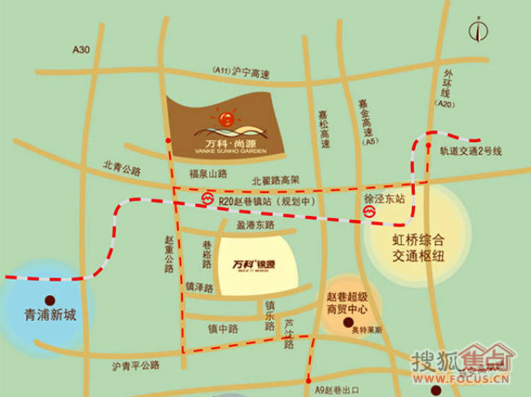 万科尚源是万科在大虹桥板块的又一重要项目,位于北青公路、赵重公路。距离大虹桥枢纽中心约12公里。并具备“三横一纵”的立体化交通路网----A9高速、崧泽高架、北翟路高架、嘉闵高架。均可方便的通往市中心各个重要商圈。