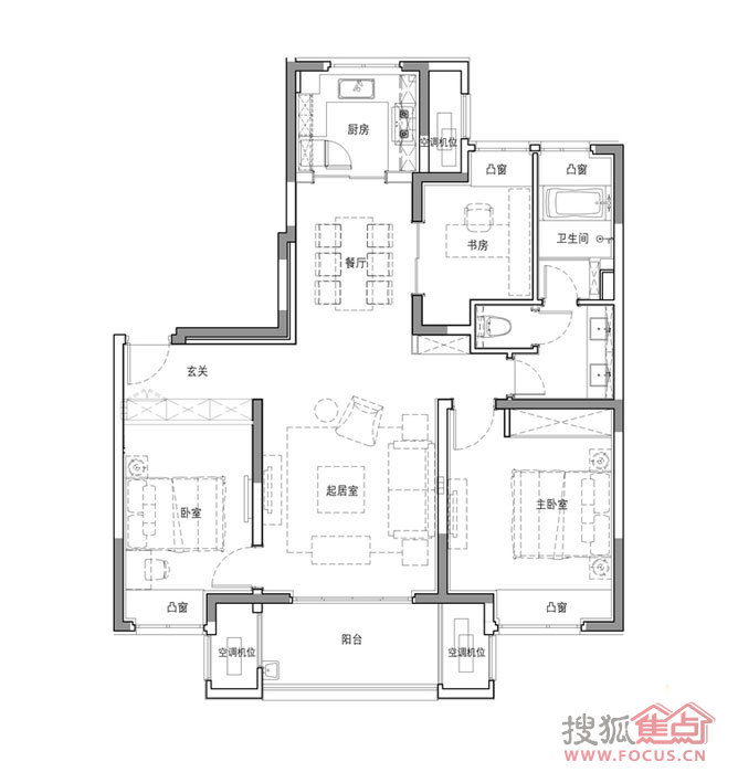 3室2厅1卫-万科尚源3室2厅1卫1厨119平中户二层户型