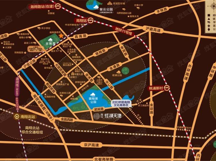 轨交:地铁11号线(南翔站、桃浦新村站),地铁嘉闵线(在建)
