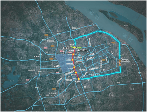 外环线位于上海市中心城外围,全长约99公里,途经闵行、长宁、嘉定、普陀、宝山、浦东、徐汇7个行政区,串联12条射线高速公路和10条射线快速路,是服务城市内外交通转换的重要通道,承担着货运与客运双重功能。