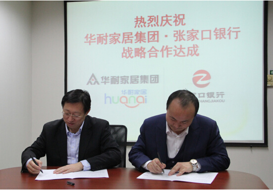 2017年2月28日,华耐家居集团与张家口银行在北京举行战略合作签约仪式,双方就未来在消费信贷、供应链金融、理财业务等多领域达成深度战略合作。未来,双方将基于相互良好的信任关系,积极推进金融领域的各项合作,推动双方各项业务的发展,实现资源共享、优势互补,打造银企合作的典范。