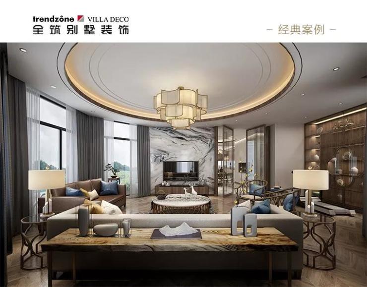 故而,设计师唐誉在对业主450㎡的别墅装修设计上,将含蓄秀美的新中式风格与时尚、精致的轻奢融合设计,不仅在格调气质上一改轻奢“浮华”本色,变得更加低调、优雅,同时打破了传统中式过于庄重、沉闷的氛围,使新中式更趋于实用,更富现代感。