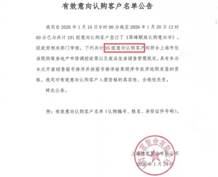 据传开盘周期内超过1500组客户到访,但首开122套,仅获得95组有效认筹,开盘当日官宣去化率70%。已经过去一周时间,网签依然挂零。这组数字不仅与板块此前频频日光的热度形成鲜明对比,更让陆家嘴集团陷入了开年即遇冷的尴尬境地。