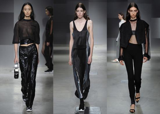 该系列的设计元素提取于形态各异的“皮肤”概念:“锁链”般的金属编织网与人体相融,形成“以假乱真”的皮肤质感,使用于创新技术的针织款式;“保护色”般的金属感西装,形态时而柔软、时而锋利,仿佛变色龙那变幻莫测的“面具”;高科技的透明弹力针织犹如人体的“保护膜”,使紧身内衣和运动套装变得抽象且具未来感;如同皮肤纹理般细腻的环保皮革,以立体手法被“镶嵌”在衣服的皮层结构里,雕塑着属于RICOSTRU的“皮肤幻象”。