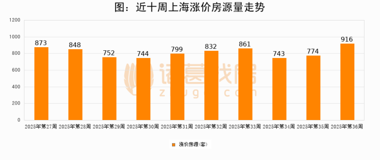 从调价房源来看,第36周上海涨价房源916套,较上周上涨18.3%。与此同时,36周涨价房源占比回落0.03个百分点,业主信心小幅波动,购房者可则需入市。
