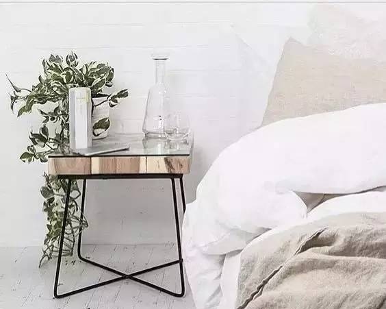 颜色材质都要和床相配,用绿植装饰也是不错的选择。