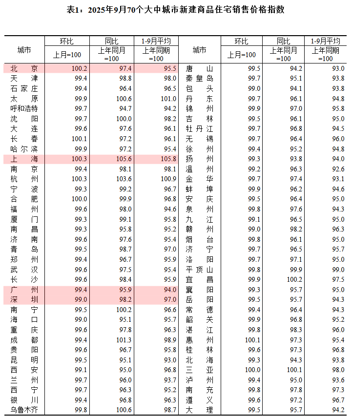 9月份,上海的新建商品住宅销售价格继续保持环比上涨的态势,涨幅为0.3%,较8月0.4%略降,仍是一线城市中环比上涨最多的城市。