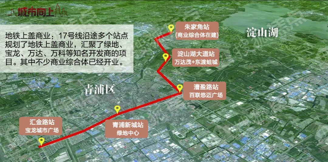 未来还有漕河泾商业体(嘉松中路站)、虹桥万科广场(徐盈路站)、瑞安蟠龙天地(蟠龙站)、中国博览会北商业综合体(诸光路站)等。此外朱家角站的交通枢纽+商业综合体的规划也已落地,正在建设中。
