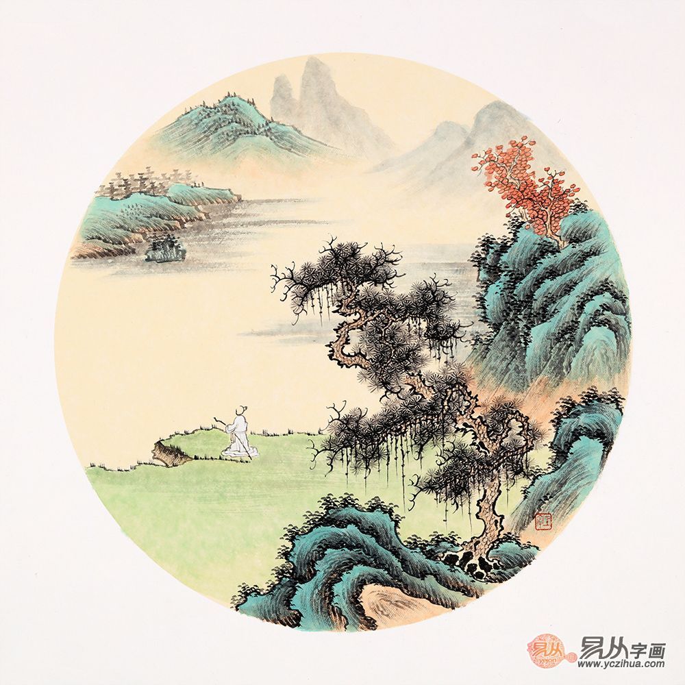 精美仿古斗方画 王宁较新山水画作品《松下问道》