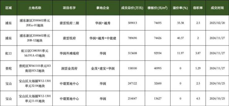 据公开报道,去年华润在上海拿地5宗,总成交价192.3亿;到了今年,华润报名参拍了六个批次土拍中的多个批次多幅地块,仅成功补仓新杨思地块(翡雲悦府二期),其他参拍均无所获。