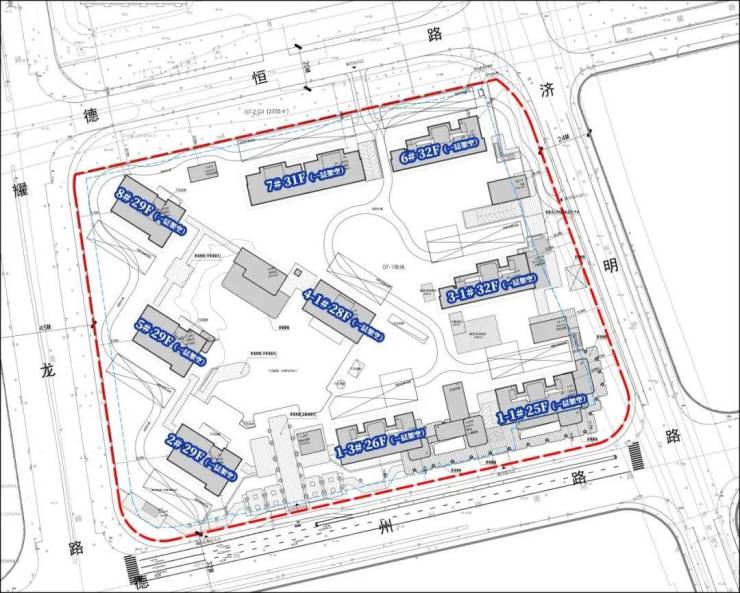 上述地块位于德州路济明路,靠近龙耀路隧道和南北高架路,距离7号线后滩站约800米,在建的19号线德州路站就在小区门口,至世博文化公园、双子山约2公里。