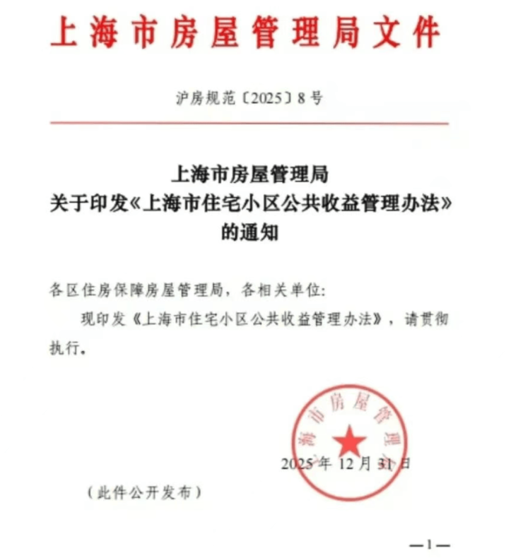 近日,上海市房屋管理局印发《上海市住宅小区公共收益管理办法》(以下简称《管理办法》),将于2026年4月1日起正式施行。《管理办法》旨在落实党建引领物业治理的相关工作要求,规范上海市住宅小区利用共有部分获取公共收益的归集、使用和管理。