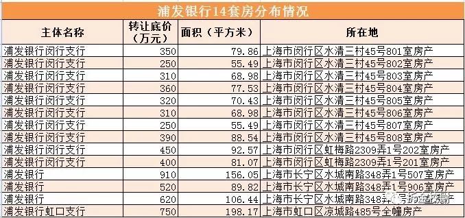 上海联合交易所披露,上海的浦发银行一口气把闵行区和虹口区14套房都挂出来了,合计挂牌底价6190万元,房产分析师判断均价比市场价低了30%。
