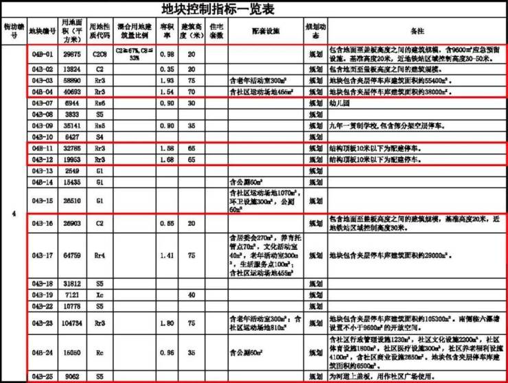 04B-20地块原容积率为2.03,建筑高度为65米,04B-21地块原容积率为1.51,建筑高度为75米,合并为04B-23地块后容积率为1.8,建筑高度为75米。
