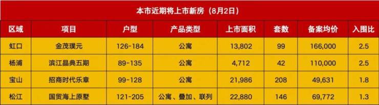 8月2日,上海网上房地产公示新一批新盘过会名单,共四个项目,分布在虹口、杨浦、宝山和松江,合计可供应495套房源。