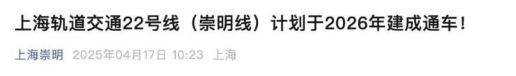 根据计划,上海轨道交通22号线(崇明线)力争于2026年内建成通车。
