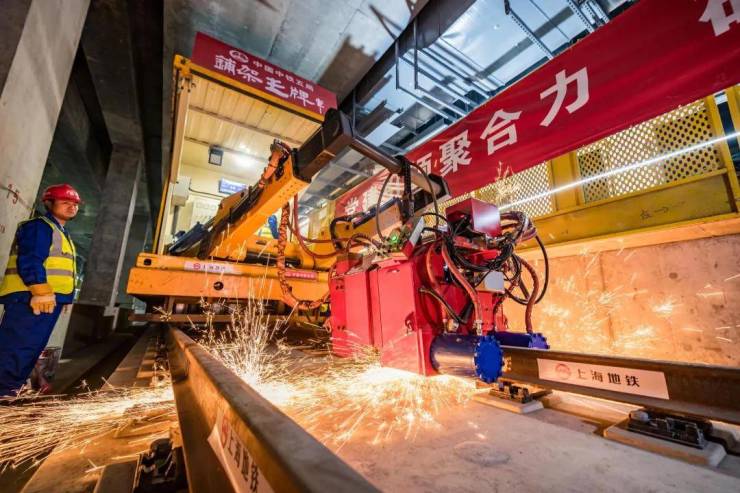 据官方消息,2026年4月21日上午,随着崇明岛陈家镇车站内最后一对钢轨接头焊接完成,上海轨道交通22号线(崇明线)正式实现全线轨道贯通。