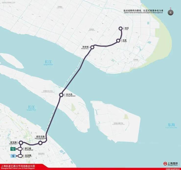 上海轨道交通22号线(崇明线)是快速联系崇明区与上海中心城区的轨道交通线路,途经浦东新区、长兴岛和崇明岛,南起浦东金桥地区,全长42.232公里。