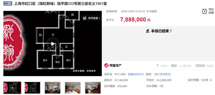 但近期瑞虹新城一期与静安府西区的法拍成交案例,却共同撕开了这一共识的缺口。