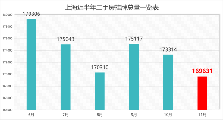 截至2025.11.30,兔博士数据显示上海二手房挂牌总量约16.96万套,这也是最近半年上海二手房挂牌量首次跌破17万套。