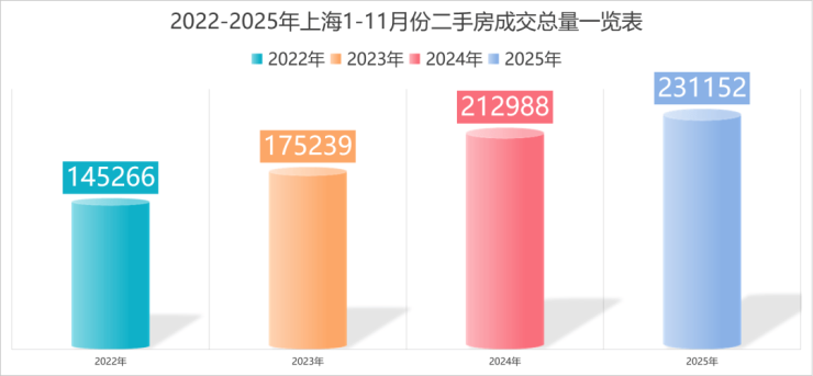 总量更是接近2.3万套!成交套数更是2025年上海二手房年度“第三高”。