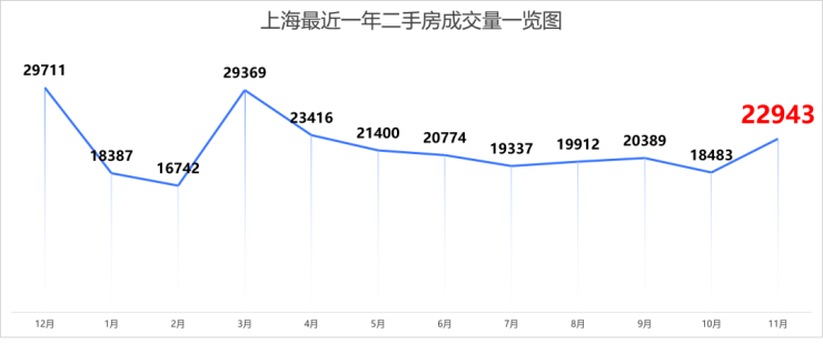 上海11月二手房成交22943套,环比10月18483套,上涨24.1%;