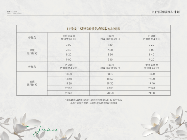 短途接驳车:工作日早上晚上最挤的时候,小区有免费专线班车,10分钟一班,直接给你送到11号线或15号线地铁站!通勤难题,解决!