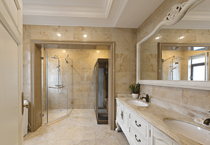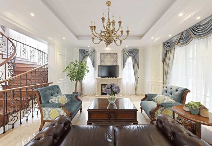 松江区合生花园 500㎡ 美式风格,本案是一套三层独幢别墅,南北狭长,格局较为合理。对户型进行深入分析,也发现有一些结构问题。厨房过大,一楼没有卧室;北阳台实用性不大;客厅阳台连接南阳台,面积又偏大。分析户型后,我们对功能进行了重新的优化。整体风格上,定位现代美式,色彩以柔和的颜色为主,意在营造出温馨的居家环境。