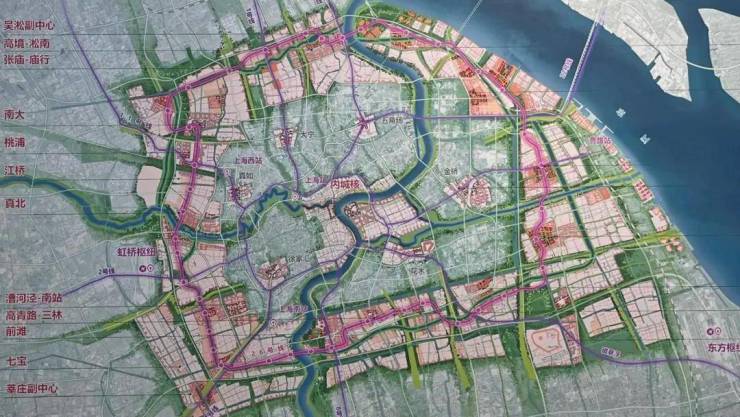 规划示意图清晰勾勒出这条“金腰带”将激活的一系列关键板块:宝山南大、上大、共富、淞南;普陀桃浦、真新;长宁北新泾;闵行金虹桥、古美、梅陇;徐汇华泾;浦东前滩、三林、张江、唐镇、外高桥。