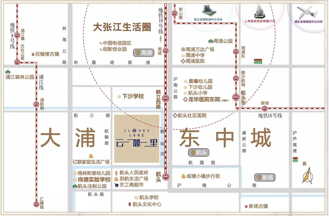 上海少见的“双轨交”板块。约800米18号轨交航头站,贯穿航头、周康、花木、龙阳路、陆家嘴等核心商圈;16号线航头东站到龙阳路仅5站,构建30分钟大浦东中央生活圈。