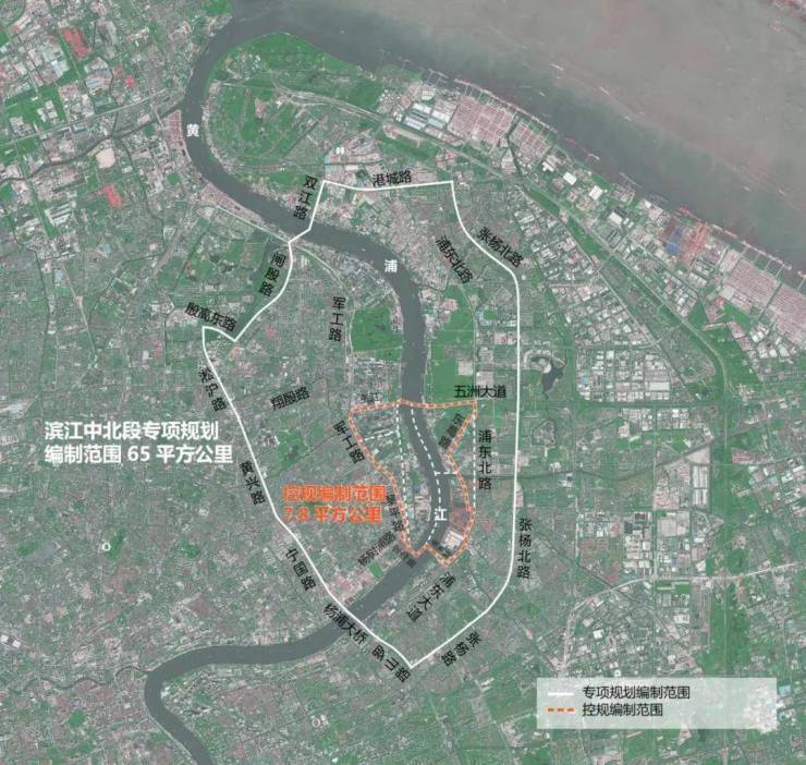 本次规划范围北起港城路,南至定海路-金桥路,西起罗山路,东至张杨路,总面积约65平方公里,涵盖杨浦区东部和浦东新区北部区域。其中,7.8平方公里的核心区域率先完成控制性详细规划,主要包括复兴岛、上海理工大学周边、森兰西侧滨江和沪东船厂(金滩)等区域。